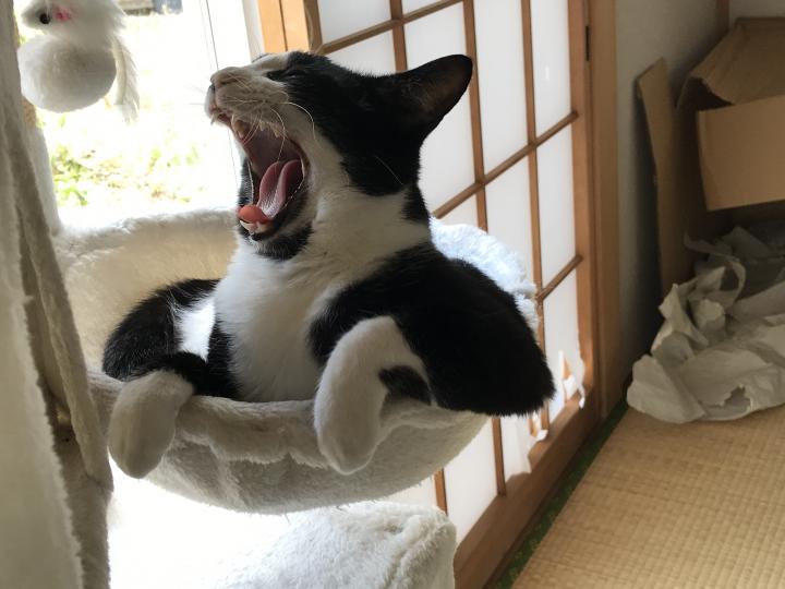 去年の地震もまっまたちの様子見にいくと なんかあった?って感じで全然平気そうだったんだけど 昨日の地震 おさまってから見に行ったら キャットタワーの一番上で寝起きのぼんやり感で ぽやーん...