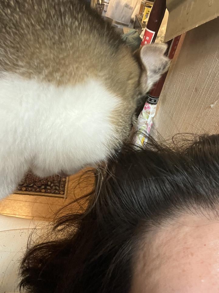 シーくんが、心配そうに髪をハムハムしてくれました🥲