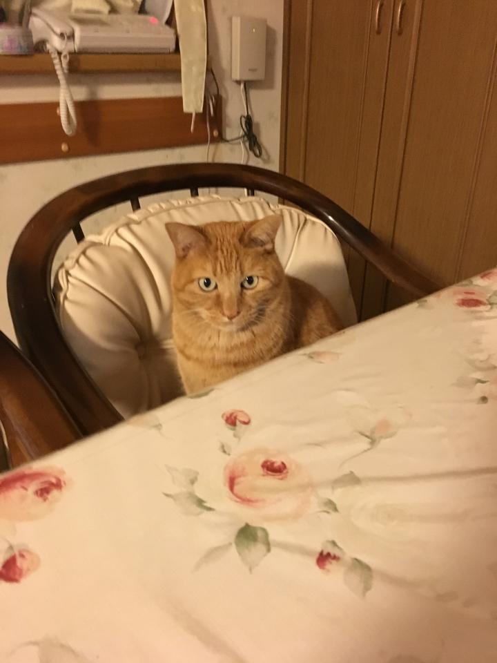 テーブルに夕飯を運ぼうと思ったら、もうスタンバイしてました。😊