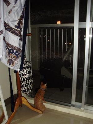 最初は音に驚いていた様子ですが、気が付いたら花火が上がるのを眺めていました。ファズも夏を満喫かな。