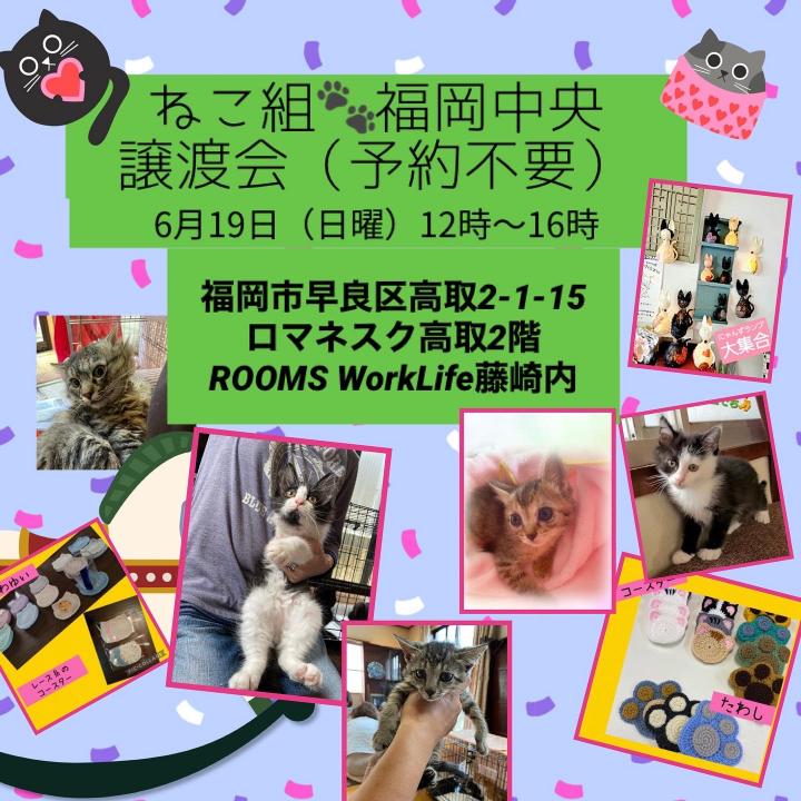 次週、19日は地下鉄藤崎駅から近くの事務所で予約不要の譲渡会です。
