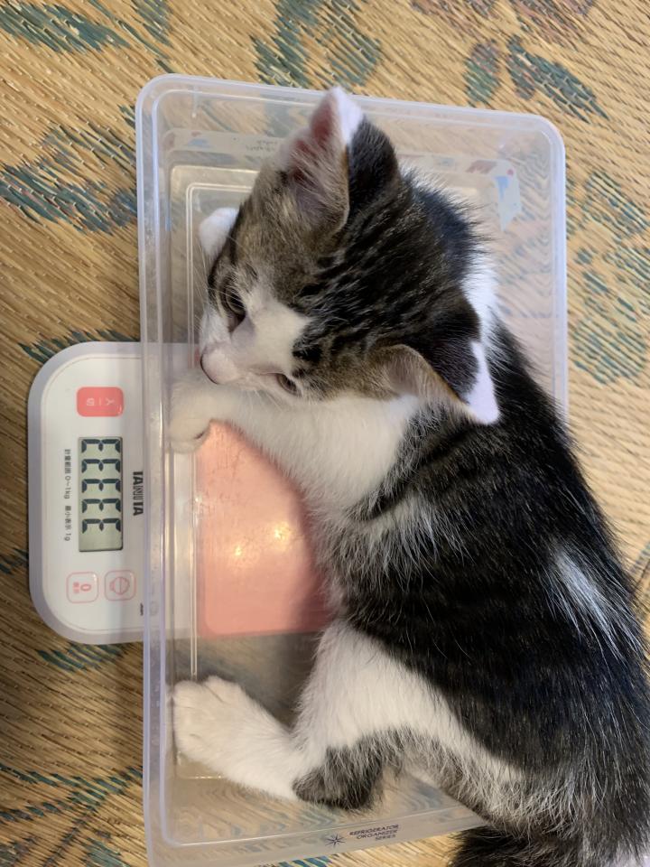 夏くん!何と体重計に載せるとエラー!1キロ超えだからです。