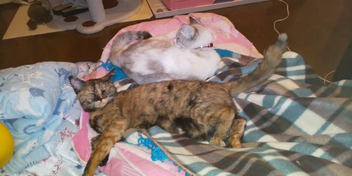 姉猫が6日前に3歳と1ヶ月でお星さまになった妹分を恋しがって…家中徘徊、食欲不振、それによってトイレの回数も減ってしまった様子。