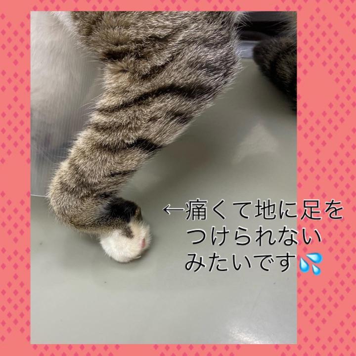 裂けた肉球がとっても痛くて庇って歩いているうちに変に足の形になったみたいです。