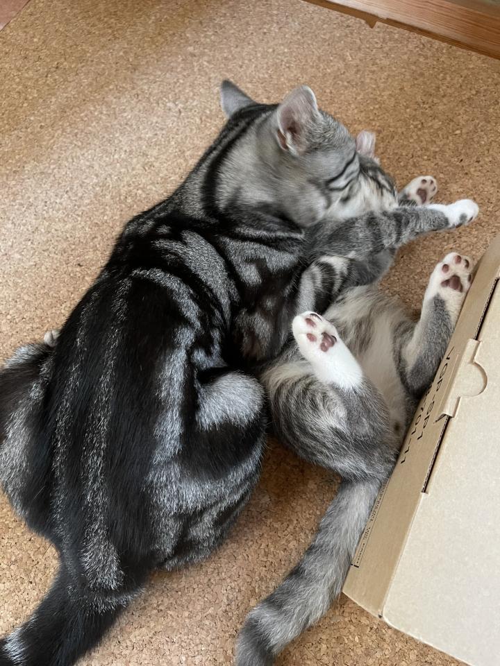 アメリカンショートヘア(シルバークラシックタビー)、キンカロー(中足)の2匹と暮らしています。 いつかは保護猫ちゃんを、と思っていましたが単身なので条件をクリア出来ずにいた所にペットショップに一年い...