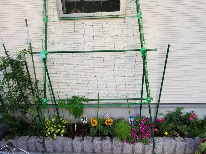 昔、実家でゴーヤを育てたら、凄くなったんだけど、見たこともない虫達が2階に入り込み、2度とやらないつもりだったけど、これは大丈夫二階に届かない棚だからね。楽しみだわ❗