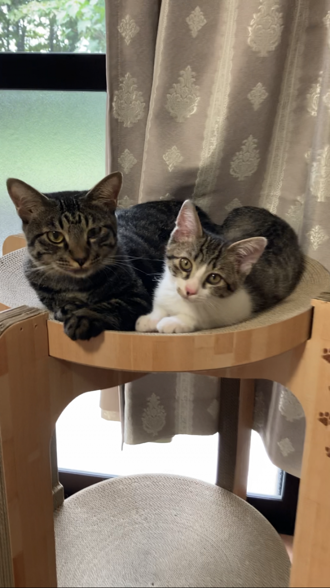 ナツと別部屋にしたりちゅーる作戦したりと色々試しましたが、結局はハルの優しさと寛容さで好奇心と元気の塊の子猫ちゃんを受け入れてくれました、、!