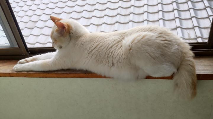 タマは窓で見張り。