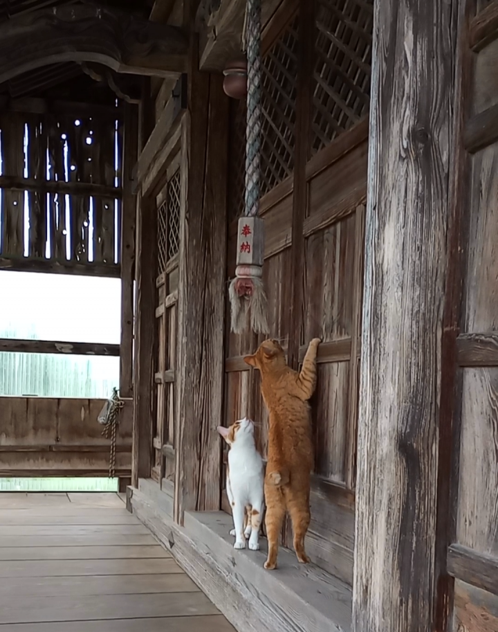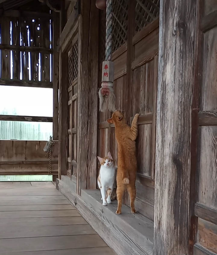行く途中に神社で待たせておいたウチの坊主2匹が、