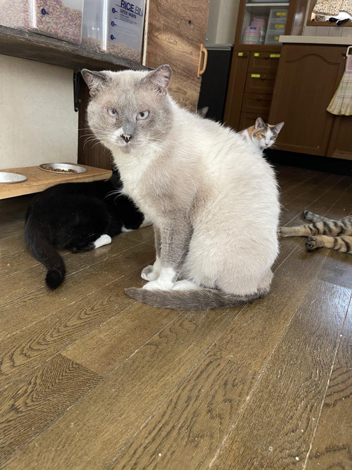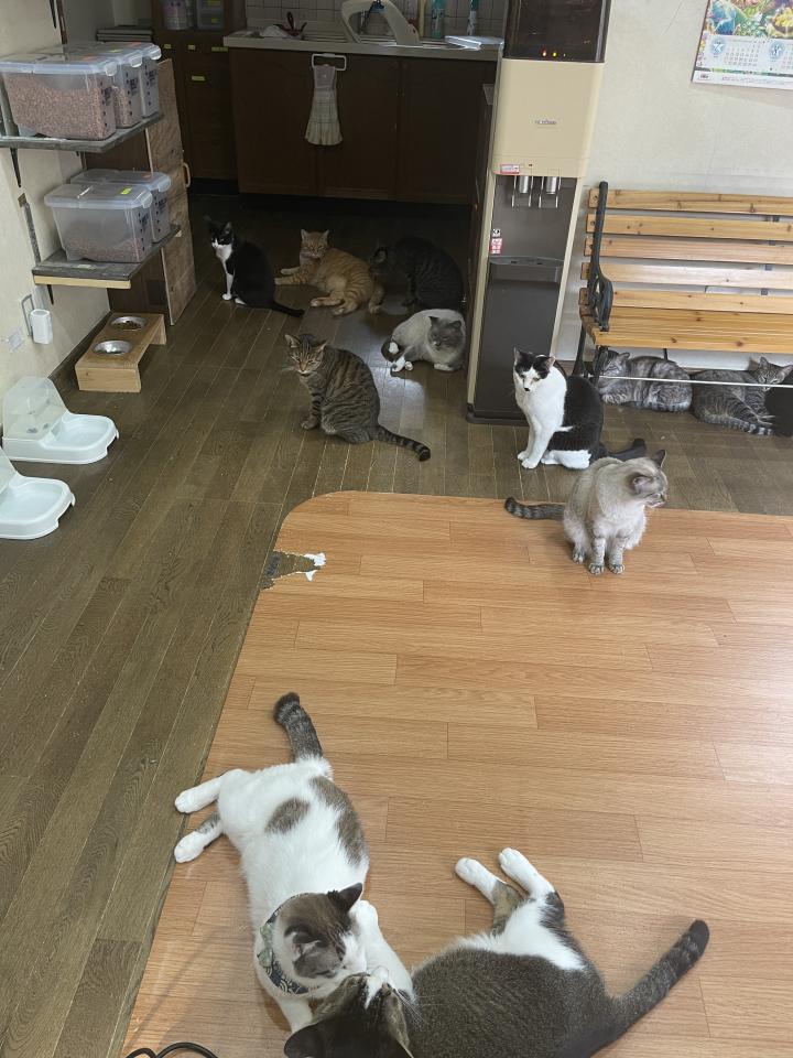 施設内はそんなのお構いなしのエアコンで猫さ...