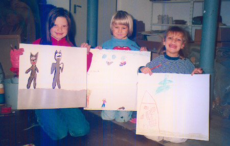 アトリエは寒いけれど(暖かくするとワックスで仕上げた像が溶けてぐにゃ~ってなってしまうので)懲りずに遊びに来る彼女達。