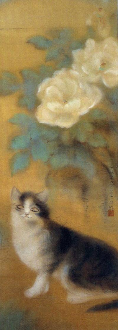 荒井 篁一郎『猫と牡丹』