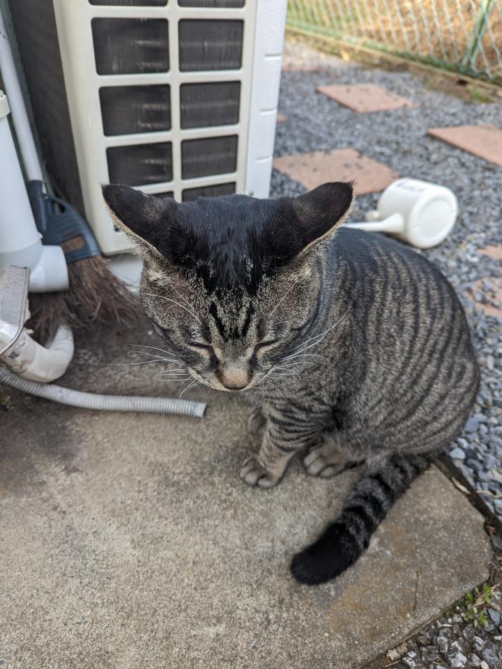 時々来てはスリゴロごはんはーんで、おうちのある子でいつかちゃんとおうちに帰ることを考えてあまり痩せててもかわいそうだからとご飯は与えていたんですが・・・・(首輪はすぐになくなっちゃってました)