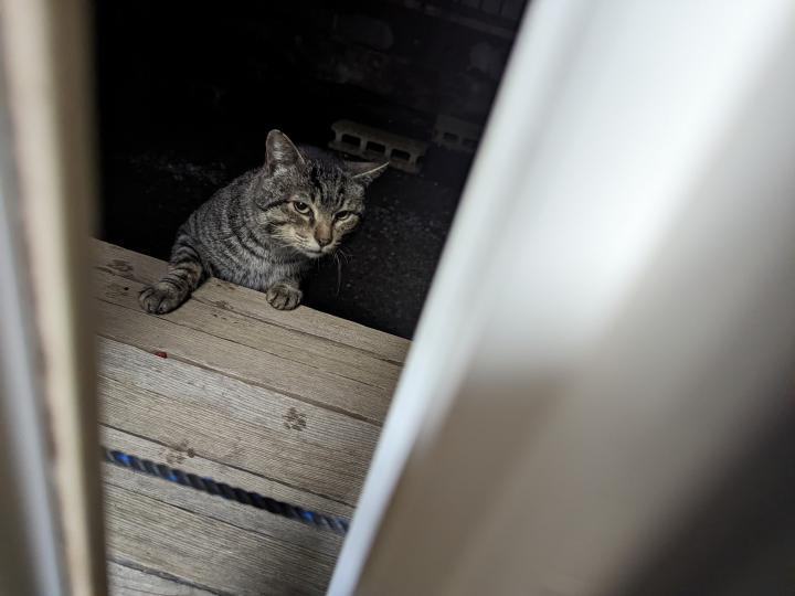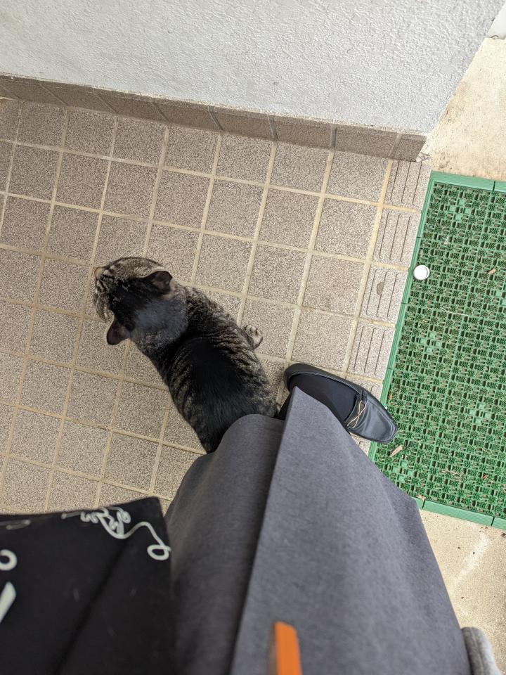 首輪ついていたしそのうち帰るかな?帰れるかな?って思って見てたんだよね。人懐っこいし初日から触れるしゴロゴロだしスリスリだし。こんなに甘えん坊さんだと外で生きていくのは危険だから早くおうちに帰りなよーって諭したけど(多分分かってない)