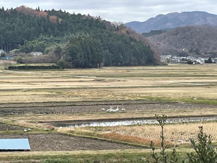 自宅の前は川が流れていて、その先は田園が広がっています。冬になるとそこに白鳥が飛んできます。