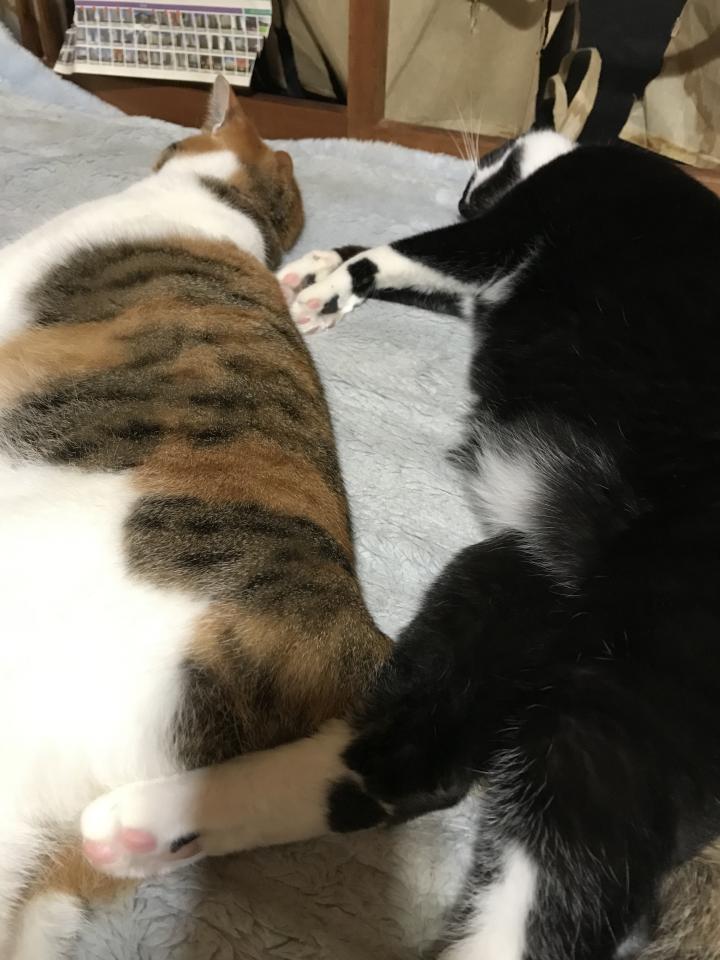 朝は、ごはんをあげてから、二度寝してるので、5時半に毛布の上から