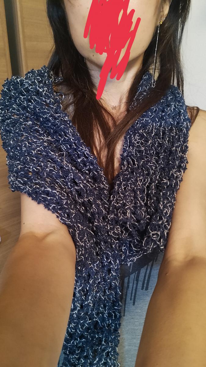 普通のマフラーまで編みました