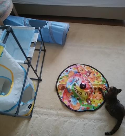 トイレ掃除も邪魔されず、クローゼットも開けられるようになった。ちょこちょこ10分ずつくらい遊んで、夜はひとりで過ごしてもらうことにした。夜中にドタンバタンしているけど、ストレスが溜まっている様子はない。