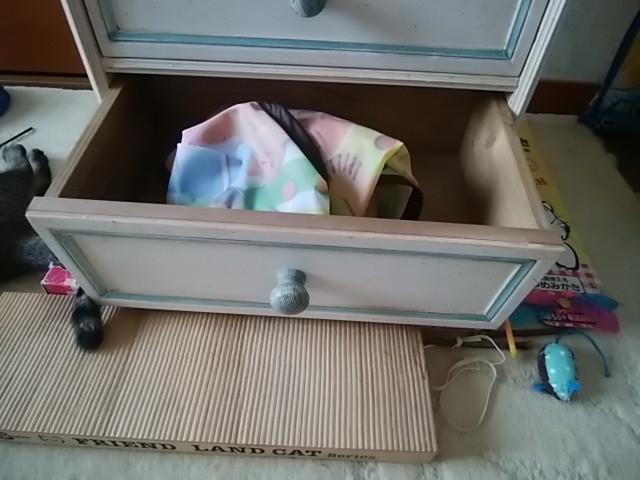 しかし、使わないときは引き出しにしまっていたら、引き出しを開けてじゃらしを破壊。