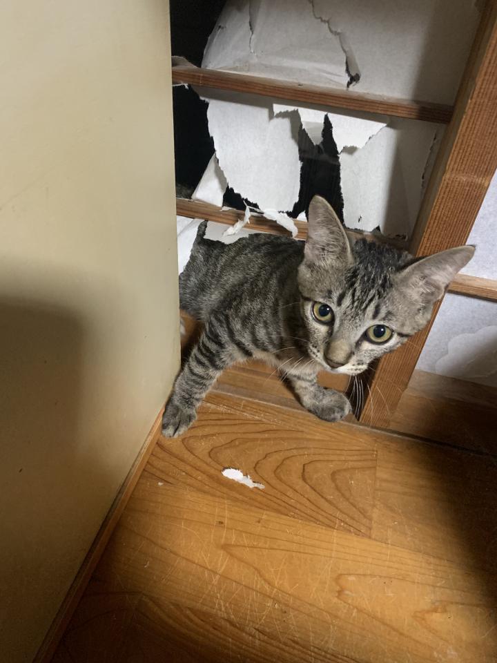 窓にある障子の小さい穴を見つけて出たり入ったり