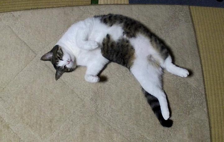 暑い日は、床でゴロゴロしてるのがいいみたいです。