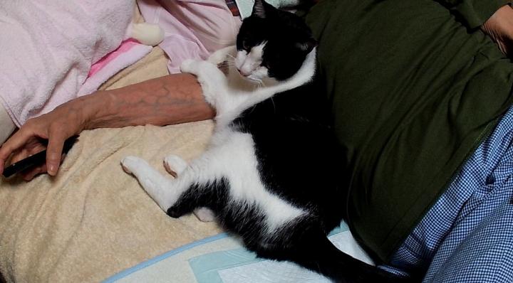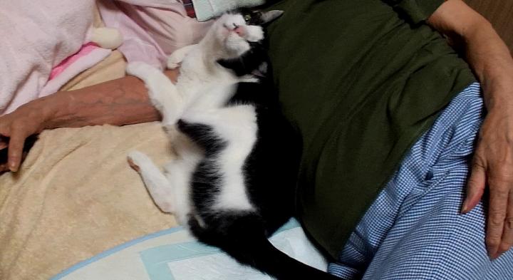 この暑さでも、お昼寝のお母ちゃんに、腕枕でべったり。