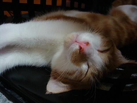 洗濯カゴの中で熟睡。猫が箱もの好きってホントなんだぁ~!