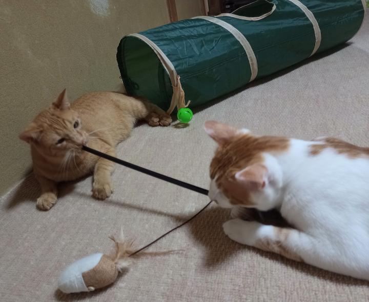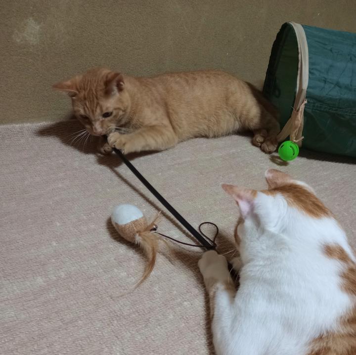 仕方なく2匹で遊ぶ。