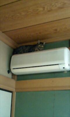 エアコン上で寛いでいるようなので、窓を網戸に変更。