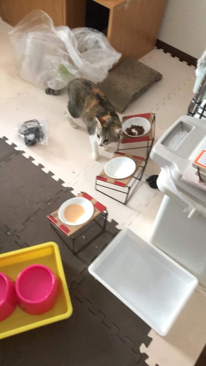 キャリーを開ける前にウエルカムのごはんを準備。