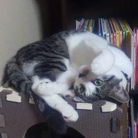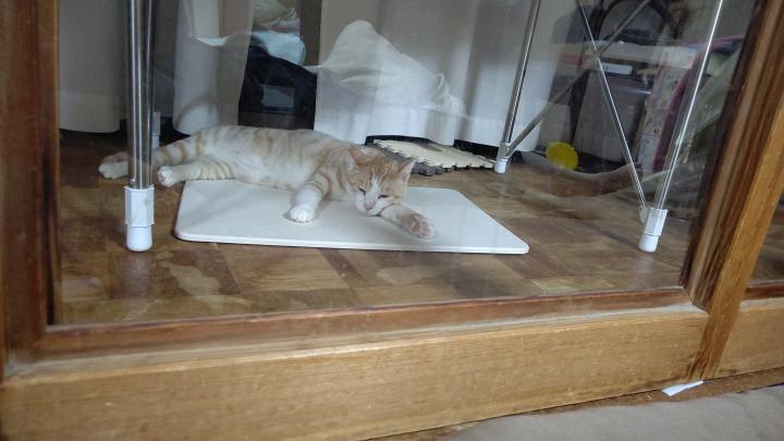 珪藻土マットで避暑するちび。