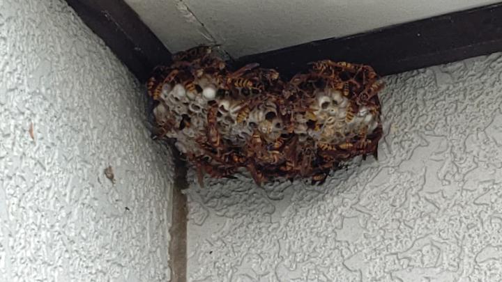 そうそう、また外に蜂の巣ができていて、これも旦那が取ってくれたのでした。