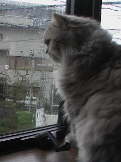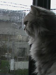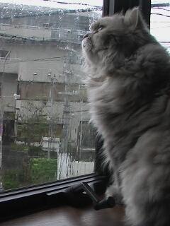 最近~日課となっているお外の匂いをちょん子にと~少し出窓を開けてみるが大雨になってきて即閉めた。