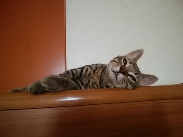 ・後ろ脚が立派で動きも体つきもシャープ。運動量も少し多い。タワー必須。キャッチミーイフユーキャンがないとトイレ掃除が邪魔されがち。