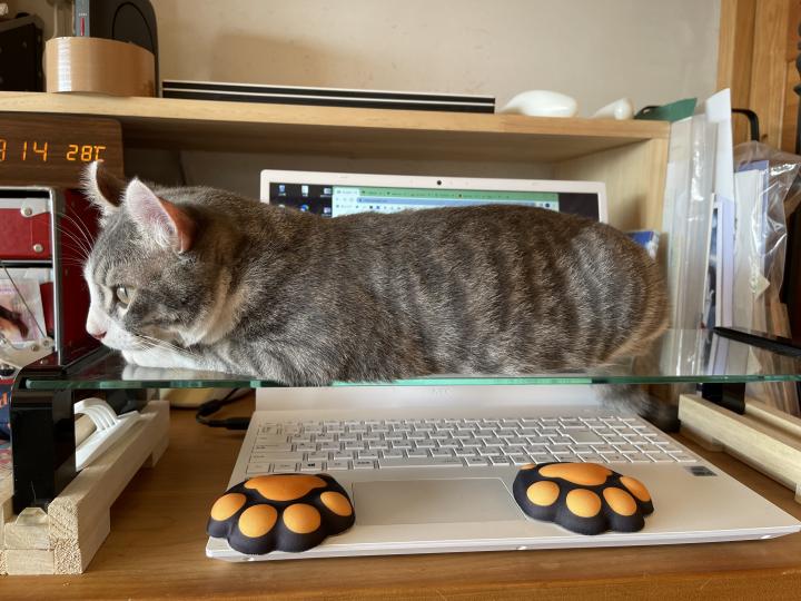あとは…パソコンのキーボードをカバーしているガラス台の上。