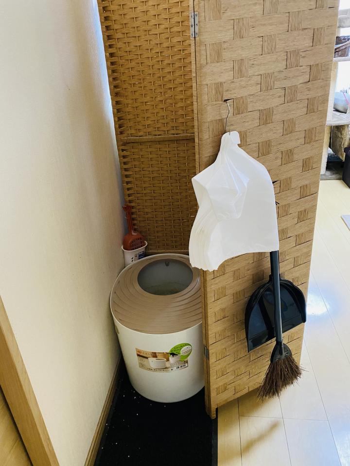 各自のネコのトイレの所に、すぐ取れるようにビニール袋を設置!!