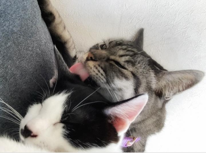お姉ちゃんが初めて毛繕いしてくれたよ🥰