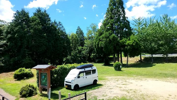 無料キャンプ場、到着した時は吾輩だけだったのですが 夕方には5テント張られていました。