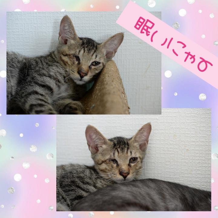 なな。猫達のための病院には外にいる時に罹った猫風邪の影響でお目々にハンデを持った兄妹ニャンコがいます。