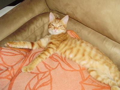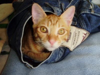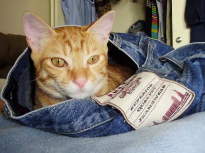 私が買い物から帰ると夫のジーンズの中で寝ている姿が★