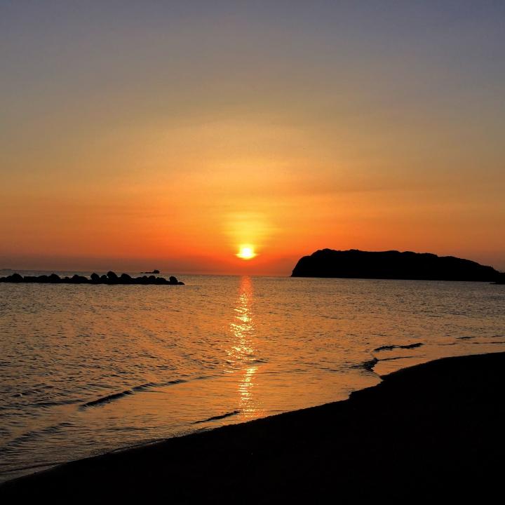 船形海水浴場から見た夕日です。