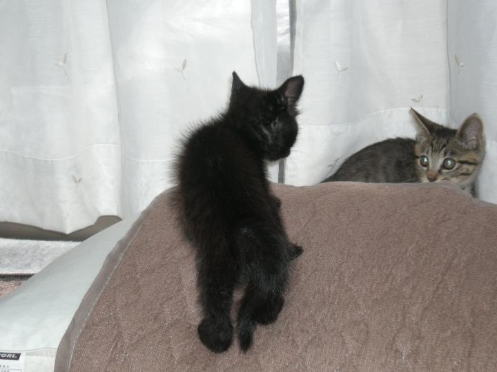 とにかく遊び、眠り、よく食べる子猫2匹です。