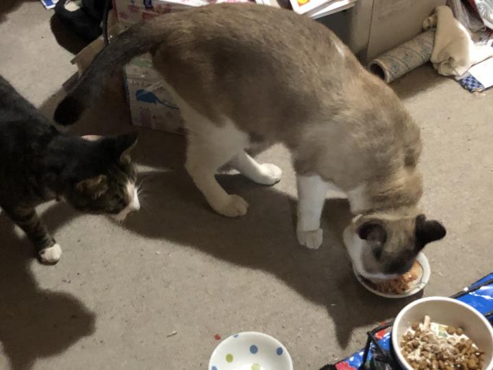 はいはい〜ご飯にミルクにちゅ〜るに、焼きカツオディナーに。