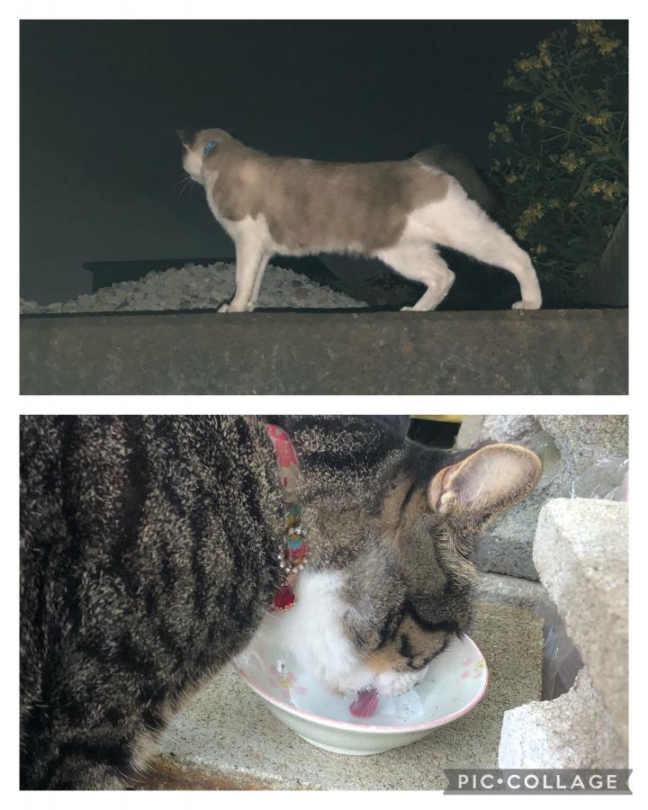 車から降りると塀から降りた白が、「うにゃあ〜うにゃあ〜♪」と甘えながら足に擦り付いてくる。