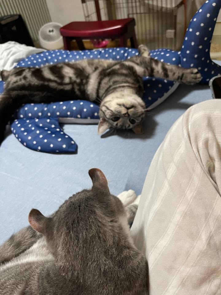そんな猫ズですが、ぶんたに夜間寝室を解放して以降、少しずつ一緒にいるのが自然な状態になってきたようです。