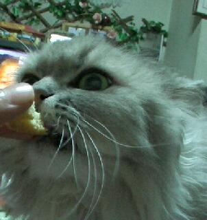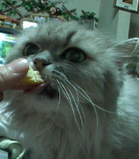 指まで食べられそうなので、あとは小さく砕いて掌に載せて与えました^^;
