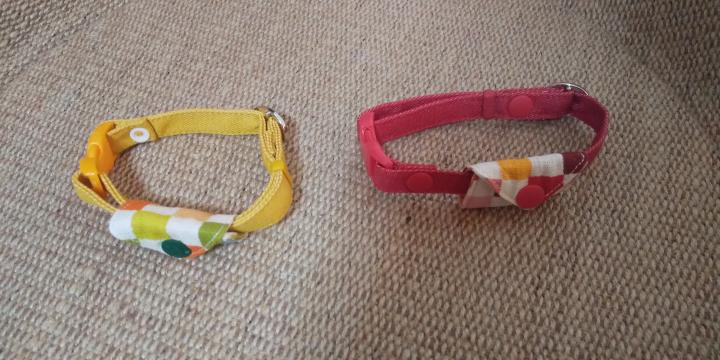 あんずちゃんには首輪の練習で何度か付けてみてたのですが、気になるのか直ぐ口で引っ張って齧るので、なるだけ気になる要因を減らそうと、軽量で鈴の無いものを選んでみました。