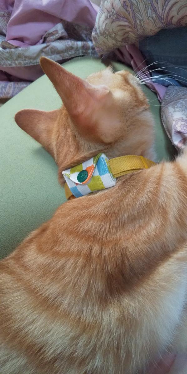 あんずちゃん、迷子札入れ引きちぎってました💦