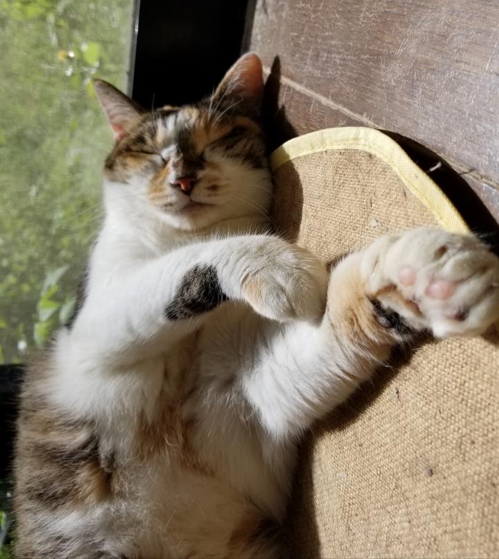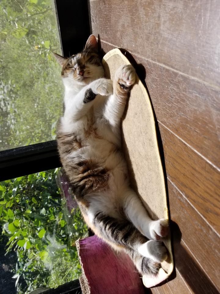 そんな台風も過ぎ去って、久しぶりのお日さまを浴びて三毛猫ゆずも気持ち良さそうにお昼寝中💤