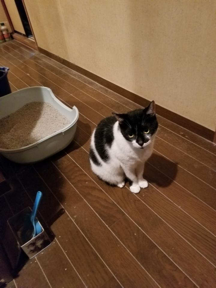 白黒猫のおはぎさん、小さい頃からの粗相がなかなかなおりません